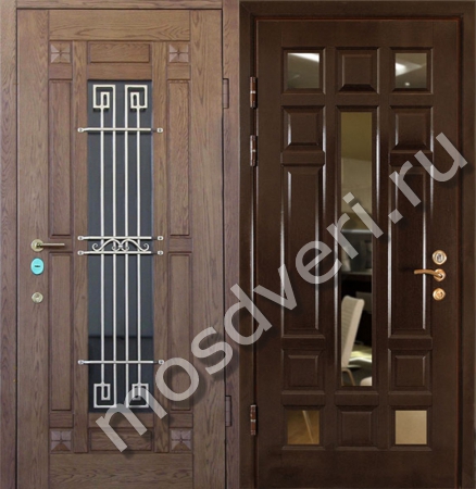 Входная дверь МДФ с ковкой снаружи и зеркальными вставками внутри — купите сегодня! Позвоните нам, и узнайте точную цену за несколько минут. Бесплатный замер — по вашему графику!